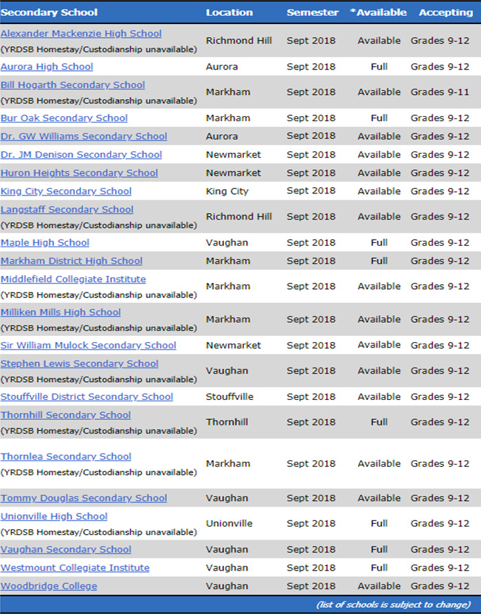 이 지역에는 Aurora, East Gwillimbury, Georgina, Markham, Newmarket, Richmond Hill, Vaughan, Whitchurch-Stouffville, King 등 9개 지역으로 나눠져 있고 5만4천 명 이상의 학생들이 공부하고 5천 명 이상의 교사들이 헌신하고 있습니다.