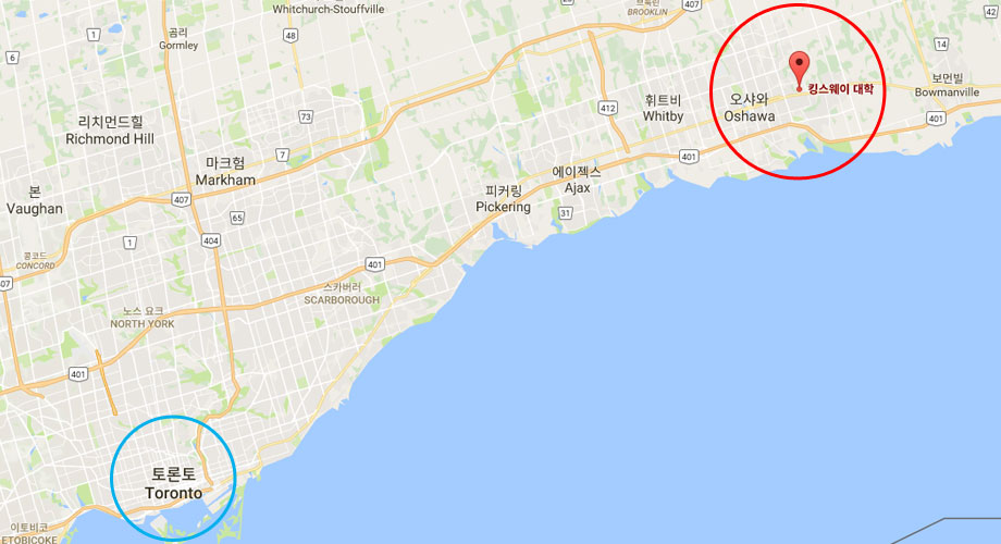 Kingsway College는 토론토에서 1시간 남짓 거리에 떨어진 'Oshawa 오샤와'라는 도시에 위치해 있습니다.