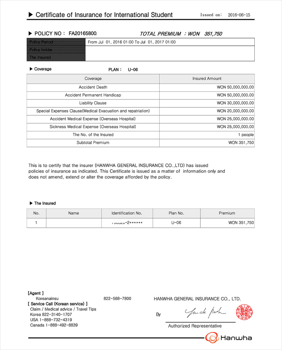 특히, 어학연수를 떠나는 학생들은 캐나다에 등록하신 어학원에서 필수로 보험증서를 제출하라고 합니다.